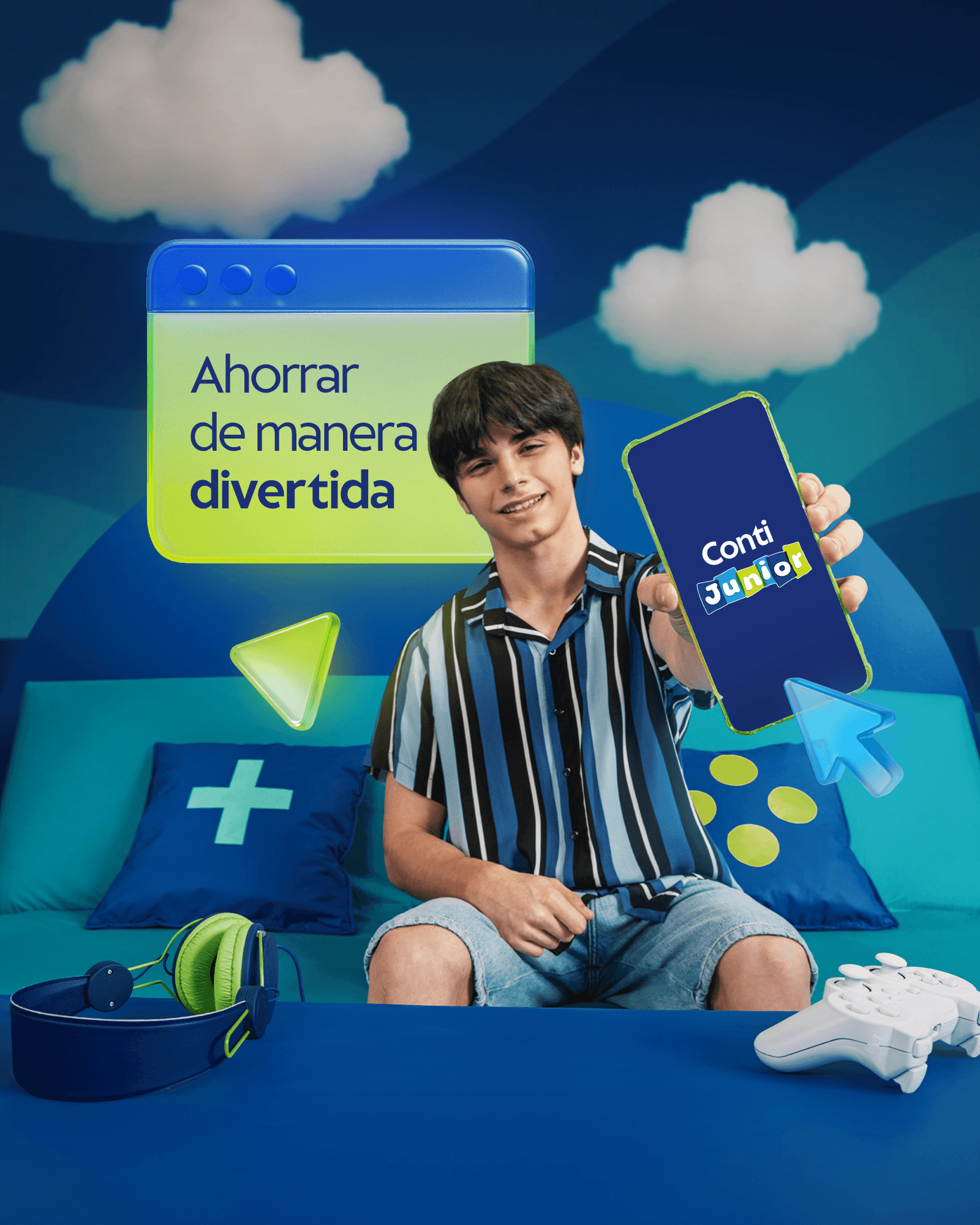 Conti Junior es una cuenta pensada para una nueva generación, desde los 0 hasta los 17 años. Un producto que acompaña a chicos y familias en el aprendizaje del manejo del dinero desde una experiencia simple, cercana y segura.